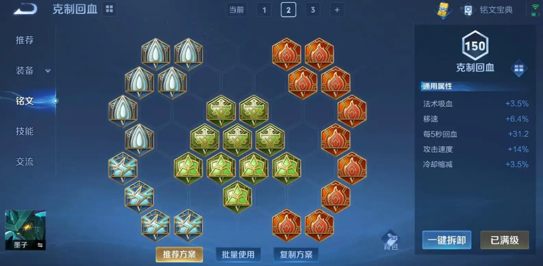 铭文方面一般会选择增加法术攻击、法术穿透和冷却缩减的属性,比如带梦魇、怜悯和狩猎的组合,这样开局就能有一定战斗力。打法上要紧记墨子的定位,他不是那种冲在最前面的英雄,而是通过二技能进行超远距离消耗和控制的能手。团战前多用二技能试探,命中敌方关键角色就能创造开团机会。一技能不要随便乱交,它可以用来调整位置、追击残血或者关键时刻穿墙保命。