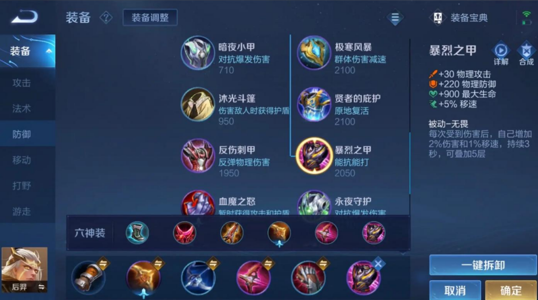 先出急速战靴增加攻速和移速,方便清线和走位。第二件装备很多职业选手会选择影刃,因为它能提供高额的攻击速度、暴击率和移速加成,被动效果在暴击后还能提升攻速,完美契合后羿依靠普攻输出的特性。第三件核心装备是无尽战刃,这件装备能大幅提升暴击伤害,让后羿的普攻产生质变,是中期团战输出的保证。