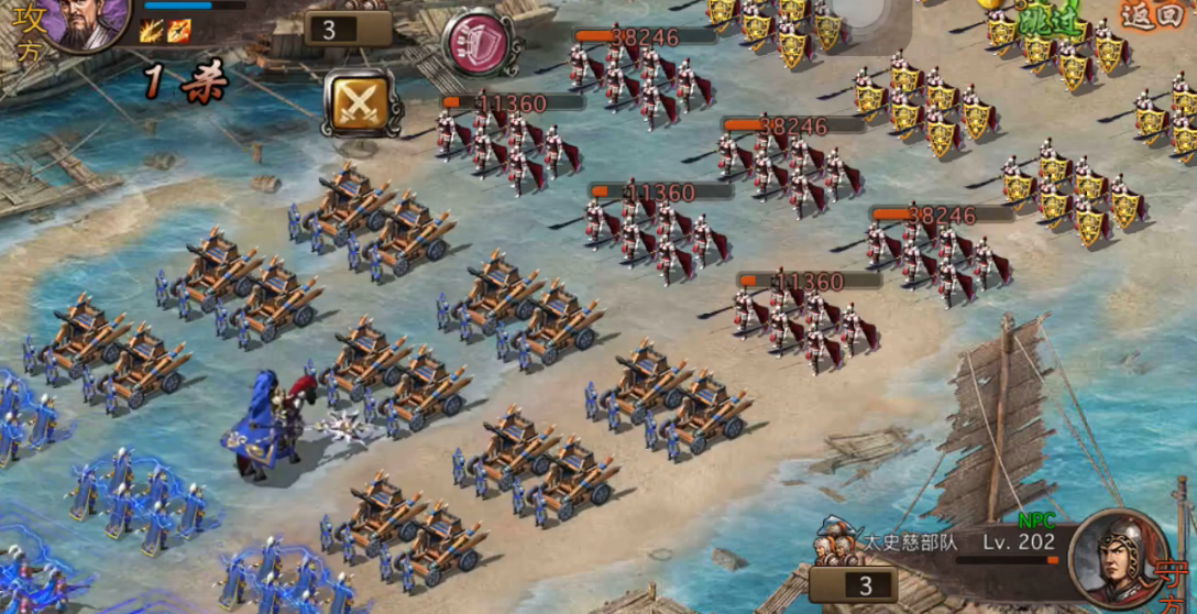 太史慈副本里敌人基本都是打四排战法的将,再加上太史慈自己会放两次强力战法,所以如果准备不充分,很容易被对方一波带走。一般来说左边的攻击类兵器比如乌蚕鞭最好能到70级以上,右边的防御类比如修罗盾、护军符怎么也得有20级以上,这样基础属性才比较稳当,不然太依赖抵挡这个看脸的东西就有点悬了。
