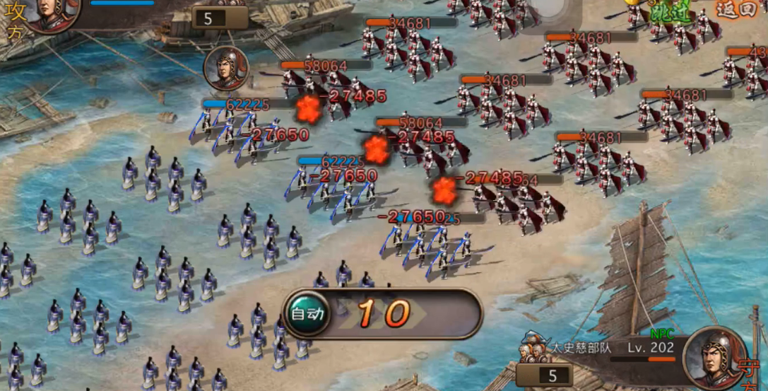 一般推荐第一位上甘宁,第二位上黄忠,第三位上典韦或者马超,第四位用夏侯惇来收尾。甘宁一上场就别犹豫,直接释放战法,然后要看看能不能成功抵挡住对面第一个部将的战法,这个抵挡如果触发了,就能为我们省下很多兵力。抵挡成功后,除了在敌人用突击战术时要注意一下,其他时候都可以优先使用水域攻击,因为副本是水域地形,用水域攻击打有额外克制效果。接着看甘宁能不能再幸运地抵挡住第二个部将的战法,如果能,那就非常完美了。