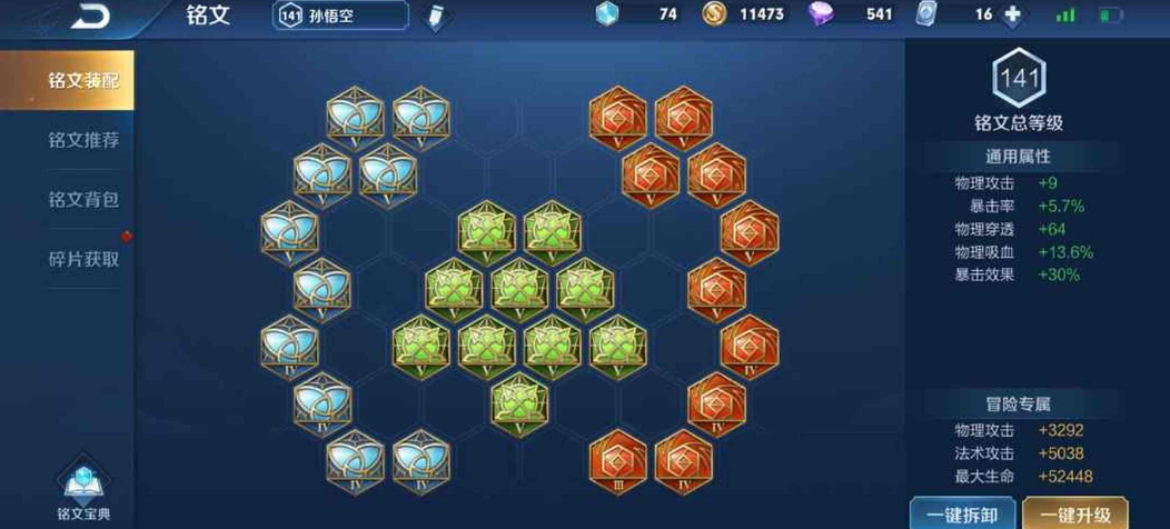 再聊聊铭文搭配吧,这对猴子的前期手感影响很大。红色铭文一般带10个无双,主打提升暴击效果,因为猴子本身和装备提供的暴击率已经不少了,提升暴击伤害收益更高。蓝色铭文常见的是带10个夺萃,这样就有16%的物理吸血,开局打野几乎无伤,全程不用回家,省下出吸血刀的格子。也有人喜欢带几个狩猎加移速和攻速。绿色铭文基本就是10个鹰眼,提供物理攻击和穿透,前期打人更疼。这一套铭文下来,猴子开局就挺猛的。