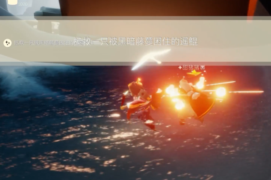 开始解救前需要做好准备工作,特别是注意霞谷区域的环境特点。霞谷会持续降雨,雨水会浇灭玩家的心火,导致任务失败。建议先点亮场景内的白蜡烛让雨停下来,这样处理藤蔓会更顺利。靠近遥鲲后长按角色使用蜡烛燃烧黑暗植物,当所有黑色藤蔓都被烧毁后,遥鲲就会自动飞走,任务也就完成了。如果多人协作可以分工同时烧除多簇黑暗植物,这样能显著提升效率。