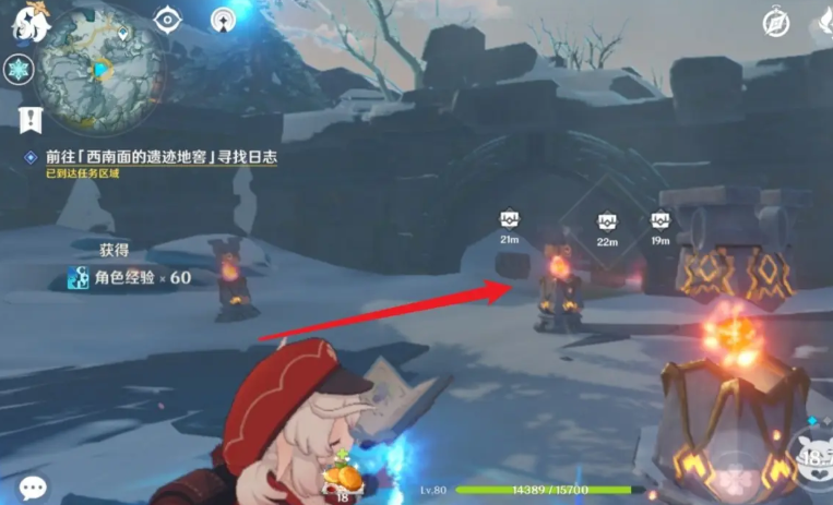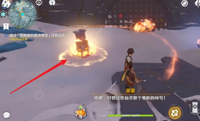 要解决雪山地区西南面的遗迹地窖这个谜题,第一步是找到正确的位置。这个地窖位于龙脊雪山的星荧洞窟区域,你可以传送到附近的锚点然后往地图左下角看,那里有一个外观看起来有点像水池或者圆形平台的遗迹结构就是目标地点了。靠近之后你会发现入口处有一个温暖仙灵,也就是大家常说的火仙灵,它会引导你进入地窖的第一层。跟着这个仙灵走就可以了,它会依次点亮周围的遗迹之烛也就是加热柱子,等你跟着它走完一圈,第一层的所有加热柱子都会被激活,这时通往第二层的道路就会打开。整个过程第一层算是热身,相对简单主要是让你熟悉环境。