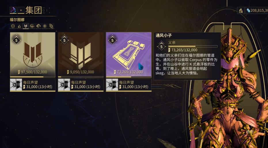 声望的积累需要日积月累,每天记得完成集团任务和佩戴对应集团的纹章,这样在完成其他任务时也能额外获得声望值,声望等级的提升,解锁的奖励会越来越丰富,包括独特的武器、战甲外观、专属MOD等各种实用物品,这些都能让你的角色变得更加强大和个性化。