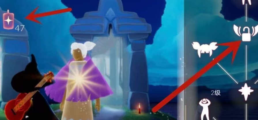 要获得永久光翼,你需要通过暴风眼的献祭过程来积累升华蜡烛。每献祭四个普通光翼就能获得一根红蜡烛,然后用这些红蜡烛去解锁先祖树状图中的锁头节点,每个解锁的先祖都会赠送一个永久光翼。解锁的节点越多,每次重生时获得的永久翼数量就越多,这能显著提升你的初始飞行能力,让你在探索高难度区域时更加从容。
