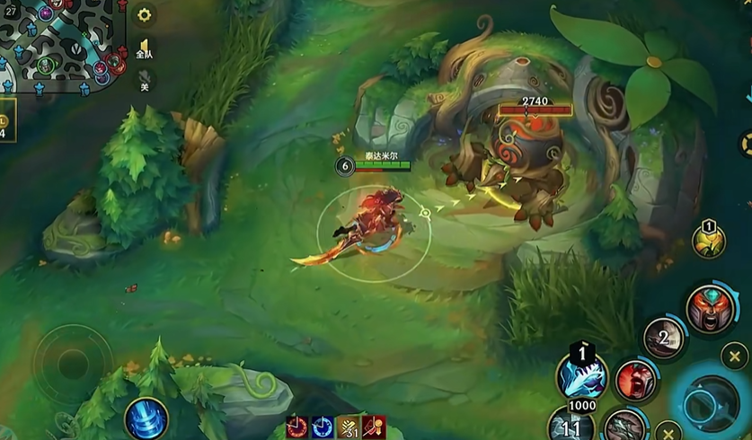 你前期需要特别注重对线的细节,主要是通过补刀和对敌人进行消耗来慢慢积攒你的怒气槽。当怒气快攒满的时候,你的暴击率会大幅提升,这时就可以找机会上前去和对手换一波血了。如果遇到的是那些手比较长、喜欢远程消耗你的英雄,那前期就需要保持耐心,多用一技能嗜血杀戮来回血,稳住自己的发育,等到五级学了大招之后,再找机会尝试单杀。他的三技能旋风斩是个很灵活的位移技能,对线时可以用来快速贴近对手,或者在被消耗后用来拉开距离撤退,非常实用。