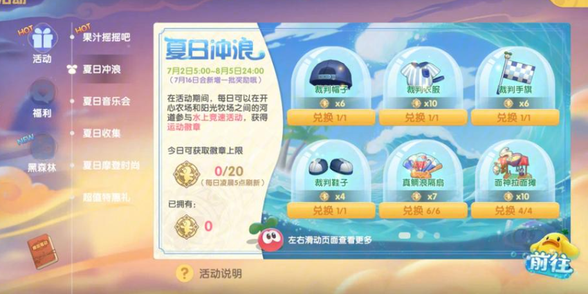 获得游泳圈主要有几种常见方式,你可以通过参与夏日季活动来兑换组合泳圈,进入果汁摇摇吧界面通过填充果汁积累积分,达到一定数量就能兑换喜欢的游泳圈,还可以通过闪光扭蛋机中的夏日精灵系列抽取限定款游泳圈,或者当奇妙之旅活动达到特定等级时也能免费领取到甜甜圈救生圈。