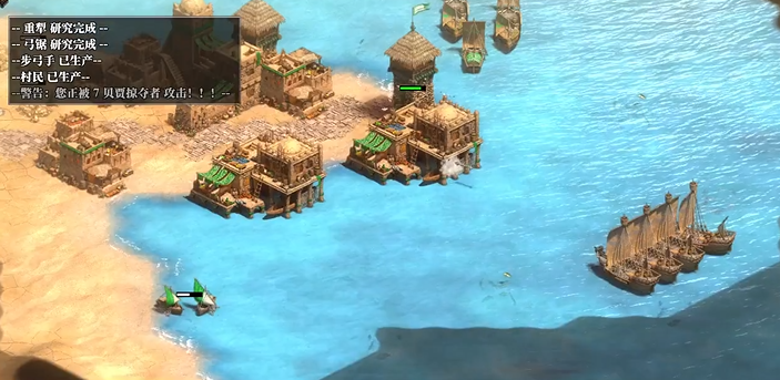 开局你需要迅速分配村民采集资源,木材和黄金是优先保障的重点,因为它们直接关系到军事建筑与部队的持续生产。同时必须重视海上副基地的防守,尽早采集石头并建造箭塔,让弓箭手进驻以抵御早期的海上骚扰。主基地发展到城堡时代后,在关键位置补建一座城堡能极大巩固防线。