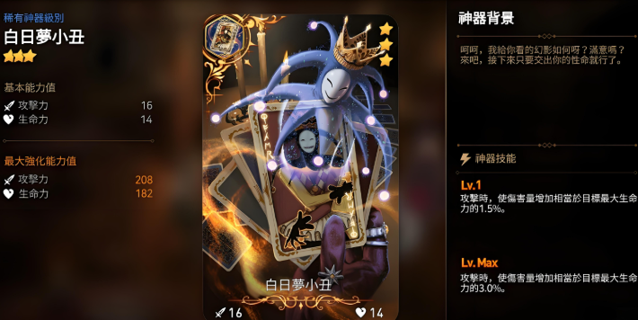 白日梦小丑是应对各类副本BOSS的通用解。在PVP或某些特殊机制的战斗中,则可以考虑更换为塔克赫尔古书或地狱切割机等功能性更强的神器。在属性堆叠上,最优先的目标是将暴击率尽可能接近百分之百,这是输出稳定的前提。在此之后,再全力堆叠攻击力和暴击伤害。如果感觉角色身板过于脆弱,可以在装备的副属性中适当补充一些生命值和防御力,但切忌过度牺牲核心输出属性。右三件装备即项链、戒指和鞋子,其主属性应优先选择暴击伤害、攻击力百分比或速度。