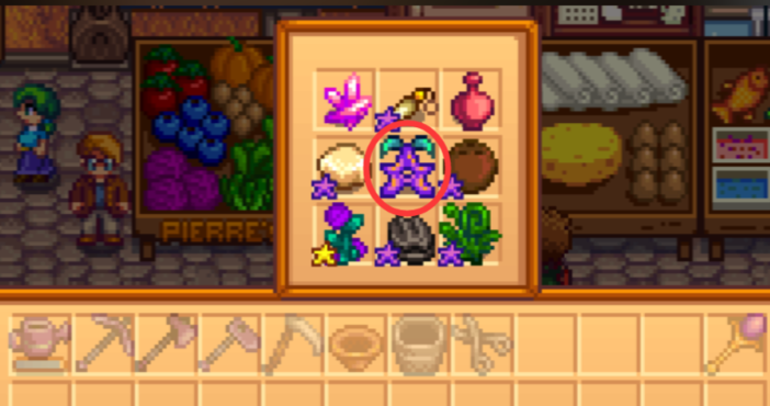星之果实作为紫色五角星状的神秘水果,散布在星露谷的各个角落,需要通过多种不同的游戏进程来获取;具体的获取方式包括成功抵达矿洞第100层后获得的宝箱奖励,在秋季展览会上使用2000枚星标代币进行兑换,以及与配偶的好感度达到极高程度后由其随机赠送。玩家还可以在下水道区域找到商店并花费20000金币购买一颗,向秘密森林中的特殊雕像供奉一颗甜宝石莓以换取,在完成所有鱼类收藏的图鉴后获得奖励,以及向博物馆捐赠所有种类的物品后作为最终奖励之一。这些获取方式涵盖了采矿、社交、收集、节庆等多个游戏系统,需要玩家进行深度体验。