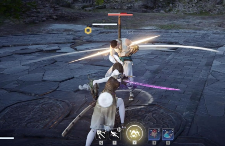 太刀的升龙斩是核心技巧之一,它不仅是许多连招的起始动作,本身也能造成浮空控制。升龙斩后除了直接下劈,还可以在空中衔接左键攻击后再按右键下劈,以追求更高的伤害,但这需要对击飞高度和时机有较好的把握。在实战中,滑铲状态下接右键升龙斩也是一种有效的突进起手方式。地形运用对太刀同样重要,在墙壁附近可以使用壁击,即走壁中按攻击键,能打出扇形范围攻击并带有击飞效果,配合后续连招能创造优势。