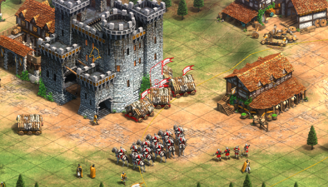 进入城堡时代后,战术体系得到全面强化,阵地推进成为主题。此时应将前沿箭塔升级为炮塔,并研究相关防御科技。条顿的农田费用减免40%提供了显著的经济优势,使得在支撑炮塔建设的同时,还能持续训练部队和升级科技。炮塔阵地需注意布局,避免单座孤立,而应以至少三座为一组构建交叉火力网,以应对敌方单位的冲击。条顿的独特银冠科技能大幅提升炮塔对近战攻击的防御力,使得阵地更难被轻装部队快速拆除。若对手试图使用冲车或投石机等攻城武器破解你的塔阵,应准备机动部队如骑兵进行拦截与清除,保护炮塔群的安全。