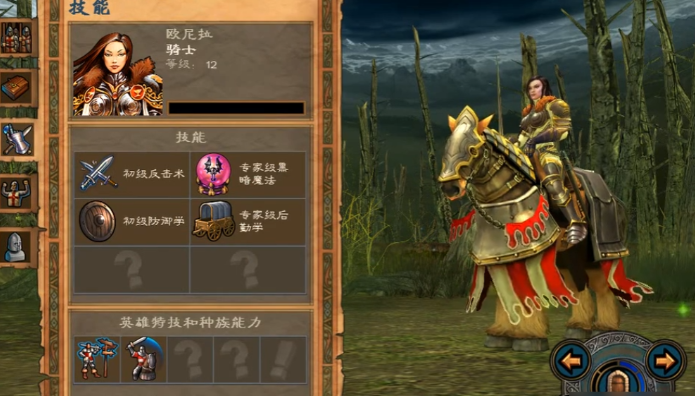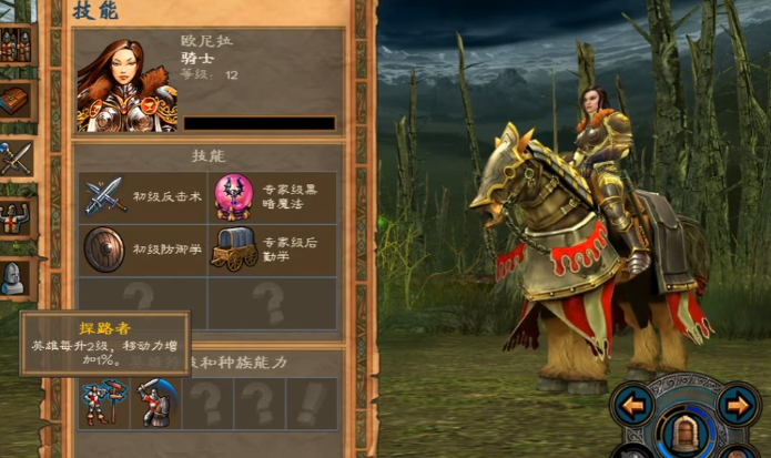 战争机械系的弩车技能能与亡灵部队形成良好互补,三连弩能提供稳定的远程火力支援,弥补部分亡灵兵种缺乏远程攻击的短板。后勤学能显著提升英雄的移动力,便于实现快速的地图探索和战术突袭,对于大地图作战帮助显著。防御术和进攻术则分别从生存和输出层面强化堕落骑士及其部队,防御术能提升部队的伤害承受能力,而进攻术直接提升物理输出。幸运术则能增加暴击与特殊效果的触发概率,为战局带来额外的有利变数。玩家需要根据当前的战局需求和部队构成,在这些进阶技能中做出权衡。