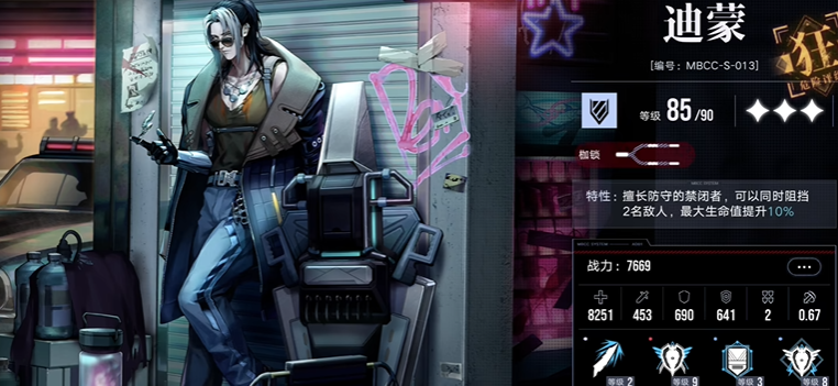 迪蒙作为狂级坚韧系角色,其价值在于顶级的防御面板与独特的团队增益能力。他不仅能凭借高额的生命值与防御属性在前排稳固承伤,其技能此身为盾还可以为全体友方提供基于自身护盾量的保护,被动技能决心鼓舞更能根据护盾值为全队提供攻击力加成,实现了攻防一体的战略效果。迪蒙的定位超越了单纯的坦克,更是一个能够提升队伍整体作战能力的战术核心,尤其适合作为开荒期的主力前排培养。切尔西伯爵则提供了另一种防守思路,其必杀技能召唤一只高血量的猫咪协同作战,有效分摊伤害并吸引火力,这相当于在场上额外部署了一个临时坦克,极大地增强了队伍的防御纵深与容错率。