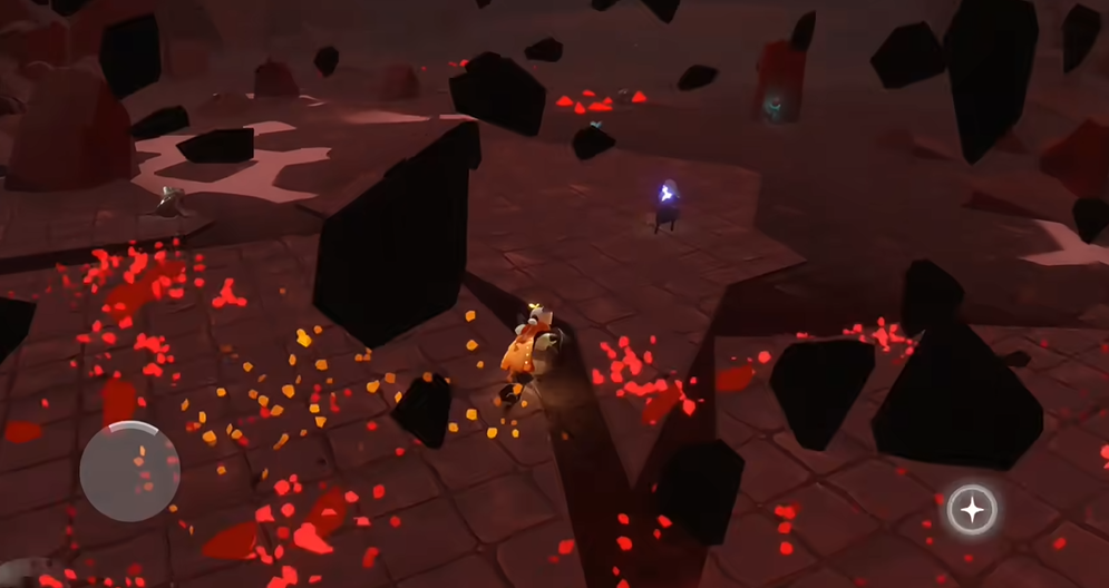 进入红雨区域前,建议携带至少20个光之翼以确保容错率。第一阶段需沿左侧矮墙前进,避开中央开阔地带。红石雨来袭时立即贴近墙体或大型石块,此类掩体可完全阻挡伤害。若中途被击中,需迅速点击屏幕左侧区域尝试站起,并立刻寻找最近的石灯恢复能量。第二阶段路线转折较多,需注意悬崖边缘的视觉盲区,建议调整游戏亮度至最高以便辨识地形。