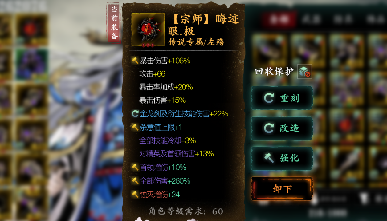 记得在吞噬时优先选择词条少的装备作为底材,比如裤子鞋子这类带减CD属性的装备,因为它们升到60级后减CD属性会自动拉满,省去不少麻烦。披风这类装备则要避开带气血和击回词条的,选3属性带空中伤害的胚子直接升60最划算。吞噬过程中铜币消耗量很大,平时要多攒点钱,别等到要进阶时才发现钱包空空。