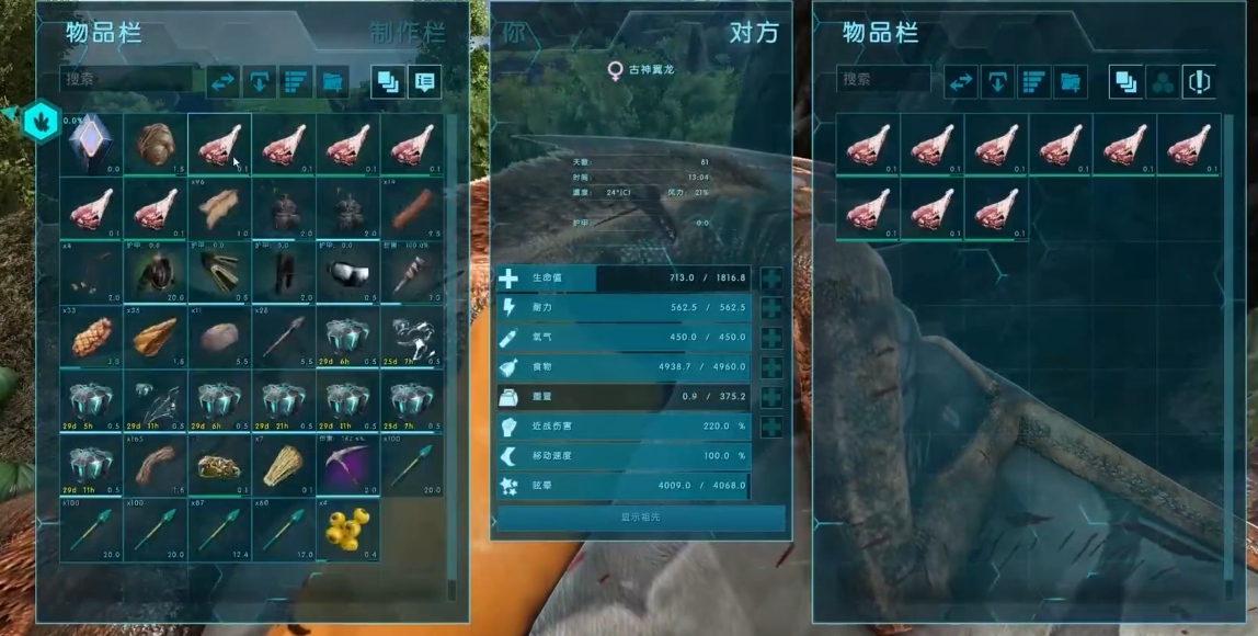 放倒古神翼龙之后别急着高兴,得赶紧在它周围围上一圈拒马。这货晕倒后特别招食肉龙的惦记,随便来个双脊龙都能把它啃了。围好拒马之后就可以打开它的背包塞食物了,古神翼龙最爱吃的是异特龙蛋饲料,没有的话用优质生肉、优质熟肉或者优质鱼肉也行,不过驯服速度会慢一些。记得随时观察它的眩晕值,快醒了就喂点黑色浆果或者麻醉药,别让它中途醒过来跑了。