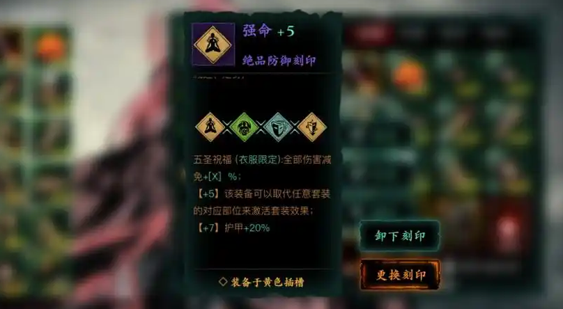 武器双刻印系统是影之刃3中提升角色输出的核心机制之一,通过特定刻印组合激活潜能可获得远超单刻印的属性加成。双刻印搭配需考虑职业特性、技能链构成及装备基础属性,合理配置能显著提升战斗效率。五圣祝福作为通用性最强的刻印组合,可适配各类宗师装备,其黄+绿+蓝+黄的槽位分布能替代套装衣服部位,触发两件套效果的同时提供伤害减免。该组合适合需要兼顾生存与输出的职业流派,如绝影的暗梦羽衣流派。