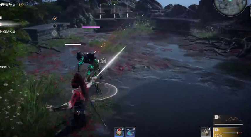 战斗环节需重点掌握三种攻击形态转换。普通攻击通过鼠标左右键触发,可打断振刀架势;蓄力攻击需长按鼠标约1秒触发蓝霸体状态,普通攻击无法打断动作;振刀通过同时按下左右键实现,成功触发可使对手武器掉落并陷入僵直。滑步操作通过Shift+方向键实现,配合蹲伏键可取消动作后摇,这是提升连招流畅度的关键技巧。