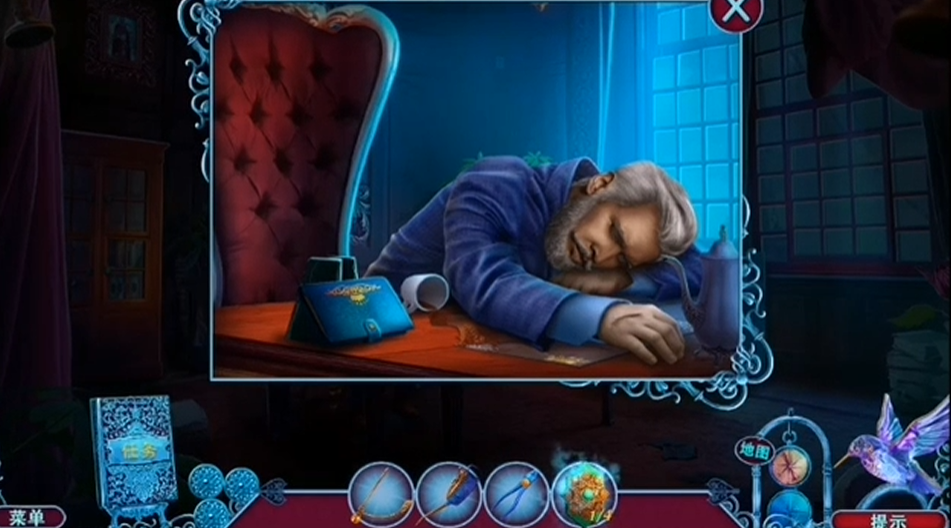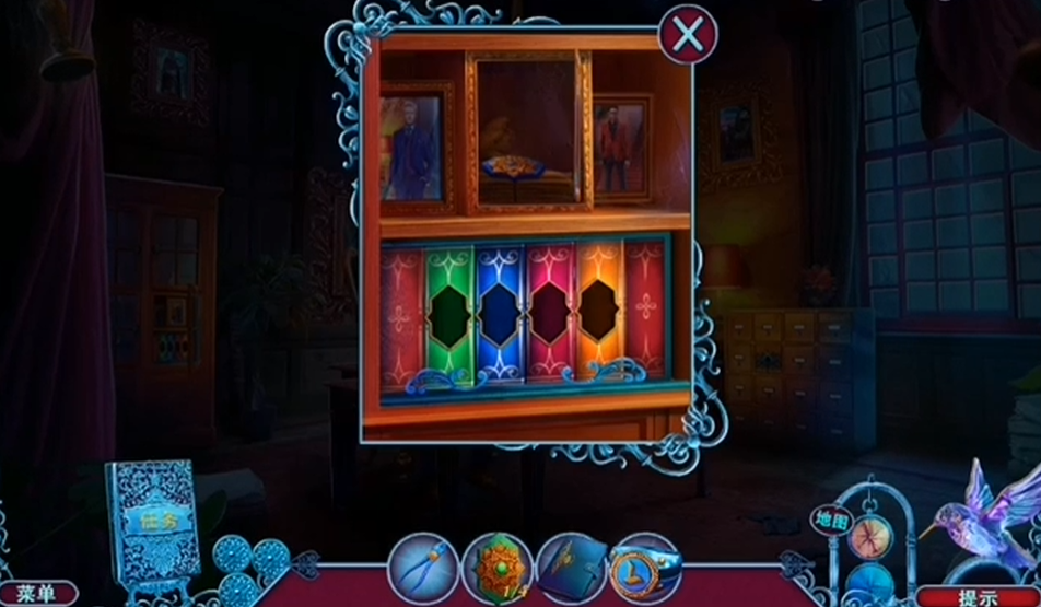 接下来需调整右侧桌面的钟盒时间至8:30,打开钟盒后取得剪刀。使用剪刀剪开餐桌左侧墙壁上的藤蔓,露出隐藏的拼图区域。注意藤蔓需多次点击才能完全清除。拼图需通过交换任意两块木板的位置进行调整,最终需拼合成特定图案,具体可参考关卡内提示或常见拼图逻辑。完成拼图后,中间石台将出现钥匙。