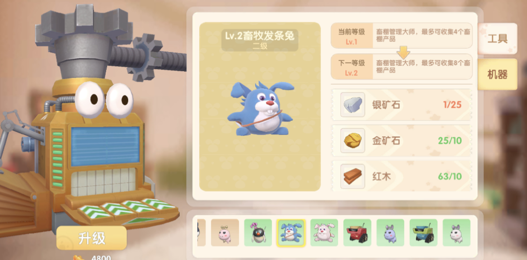 畜牧发条兔需通过家园中控台制作,摆放后会自动完成剪毛、挤奶等操作,适合频繁离线或追求效率的玩家。绒毛的用途主要包括合成道具和完成任务订单。具体合成配方需在游戏内查阅,但因其作为新增资源,多数需求与季节性活动或高阶制作相关。建议玩家优先储备,避免临时短缺影响进度。
