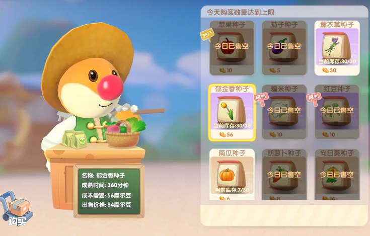 种植郁金香和薰衣草的前提条件是农场主等级达到1级,并开通超级拉姆特权。超级拉姆商店是获取种子的唯一渠道,玩家需进入商店后直接购买对应种子。需薰衣草的利润效率更高,每分钟收益可达0.5摩尔豆,适合追求短期收益的玩家;而郁金香的单次收益更高,适合长期规划的种植者。