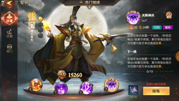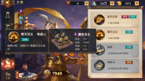黄天秘术这个技能性价比超高,开局直接送12个黄巾先锋,相当于多了一支队伍。记得优先收集增加召唤单位属性的装备,比如提升生命或攻击的宝物。战斗中尽量让召唤单位先出手,利用人海战术快速压制对手后排。如果对面AOE技能多,记得调整站位分散小弟,避免被一波清场。