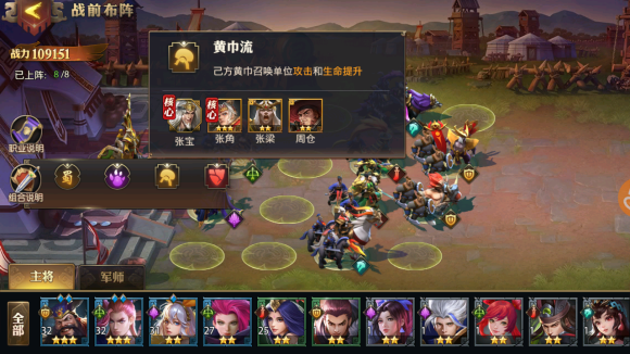 黄巾流的标配是张角、张梁、周仓,再搭配刘备当肉盾,避免小弟们过早被秒。如果走野兽流,孟获开局自带战熊,马云禄能召唤双狼,配合蜀国羁绊效果更强。袁绍是召唤流的神卡,场上小弟越多他的部队就越猛,攻击加成能堆到80%抽到的话一定要带上。最后一个位置可以选赵云补输出,或者黄月英加治疗,看你的需求调整。