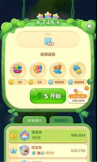 开心消消乐748关的核心目标是于限定步数内收集10个金豆荚。此关布局存在垂直落差,金豆荚初始位于上方区域,其下落至底层收集栏的路径被下方障碍物所阻挡。通关关键在于系统性地消除底部障碍物,特别是覆盖在传送门上的雪块,以打通金豆荚的下落通道,并充分利用闪电鸟与特效组合进行高效清除。