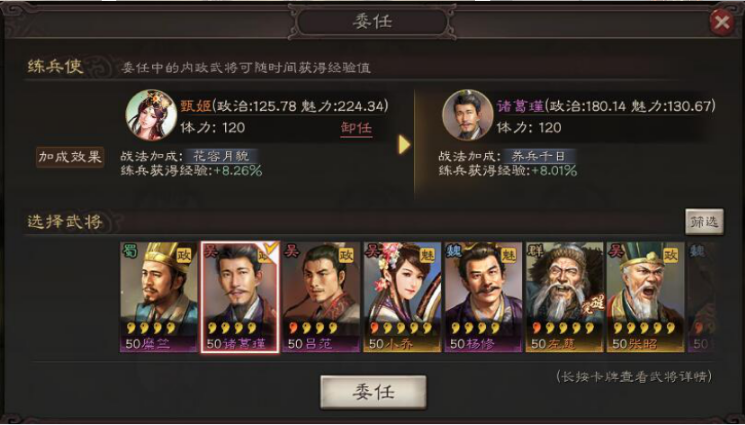 武将作为核心战力,其合理运用需建立在系统化培养与战场适配基础上。武将进阶是提升属性的重要途径,通过消耗同名卡牌可增加自由分配点数,五星上限为五次进阶,总计五十点属性加成。属性分配需严格遵循武将定位:武力型优先强化兵刃输出,谋略型侧重智力提升,速度属性则直接影响战斗中的行动顺序,需根据战术需求调整。等级提升同样关键,初期通过攻占资源地积累经验,每十级获得属性成长与额外加点机会,兵力上限随等级同步提高,直接影响部队持续作战能力。