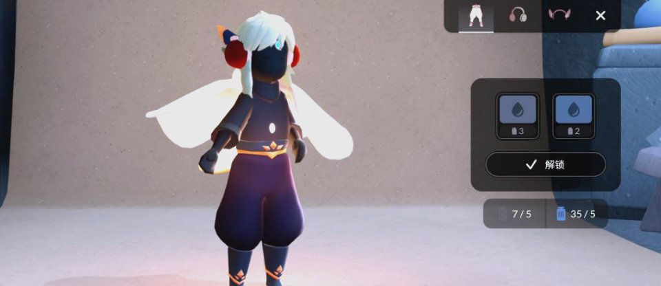 正式兑换得回到遇境。这位舞者带来的可不止灯笼裤,还有帅气的扇子发型和活泼的跳舞动作。兑换灯笼裤需要准备75根普通蜡烛,如果想把发型和动作一起带走,总共得攒够170根左右蜡烛外加十几颗爱心。记得提前跑图攒资源,尤其是爱心需要和朋友互赠心火慢慢积累,临时抱佛脚可能会错过心仪的装扮哦。