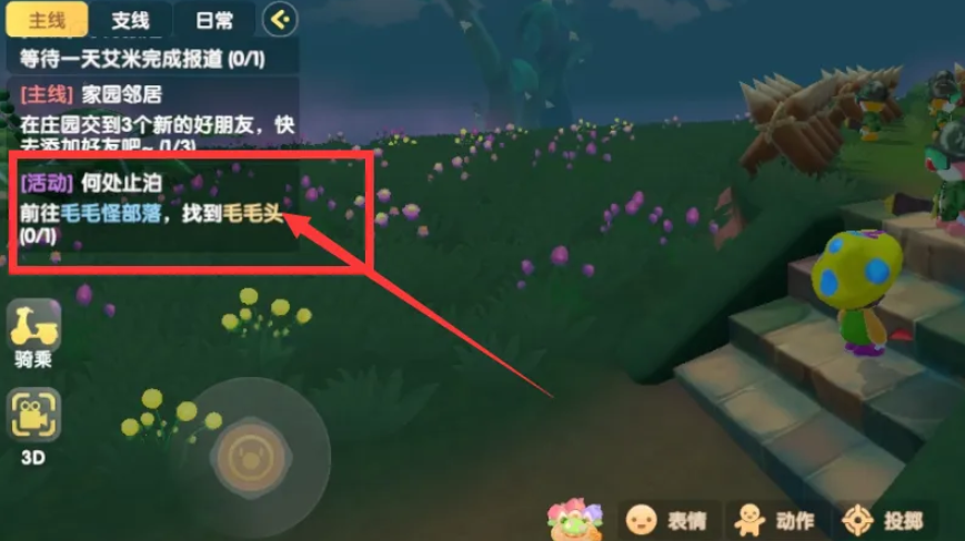 毛毛头分为四种情绪类型,需针对性交互以确保任务顺利进行。暴怒毛毛头呈红色,需投掷水球使其冷静,水球可通过白熊兑换或与其他毛毛头互动获取;贪婪毛毛头为黄色,需赠送矿石或礼盒类物品;暴食毛毛头呈橙色,接受农作物果实或餐厅食物;伤心毛毛头为紫色,要求倾听其讲述故事。错误交互将导致毛毛头消失或任务中断,可通过切换地图重新加载解决。每日完成引导后,需返回部落与族长同步进度,连续两天完成参观流程才可进入最终阶段。