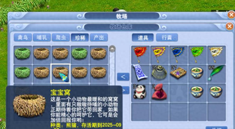 需从市场或NPC处获取宝宝窝存入牧场仓库,鸟类、哺乳类、爬行类和珍稀类动物各有特点,重点关注饱食度和清洁度管理,饱食度低于85将停止产出,每日消耗约5点,繁殖时额外消耗,喂食建议保持饱食度90以上以确保正常繁殖和产出。清洁牧场和动物每日必做,点清洁度自动排序后处理不满值,剩余寿命切换为距离老年便于监控,产出收集需在饱食度70以上且清洁度100时进行,避免浪费。