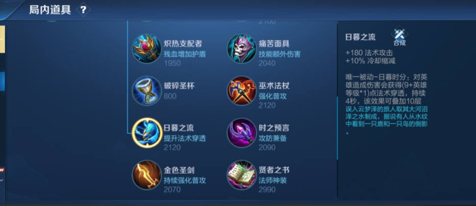 后面两件装备看情况灵活调整,如果队伍缺输出可以补痛苦面具和日暮之流,面具被动配合技能持续耗血特别有效,日暮的穿透让咱们的伤害不至于刮痧。要是队友输出足够,咱就专心当盾,出旭日初升加护盾或者救赎之翼保人,最后一件选贤者的庇护容错。