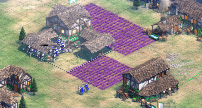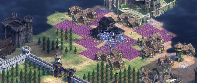 当经济初步稳定后就要开始准备进攻,浅滩位置是建立攻城武器厂的理想地点,可以在这里生产投石车来对付敌人的城镇中心,首先目标是解决绿色势力的城镇中心,投石车可以有效摧毁这些防御建筑,接下来用类似方法对付橙色势力,先用骑兵部队骚扰对方军事单位,再用投石车攻击其城镇中心,在这个过程中要注意保护投石车不被敌人近战单位接近。