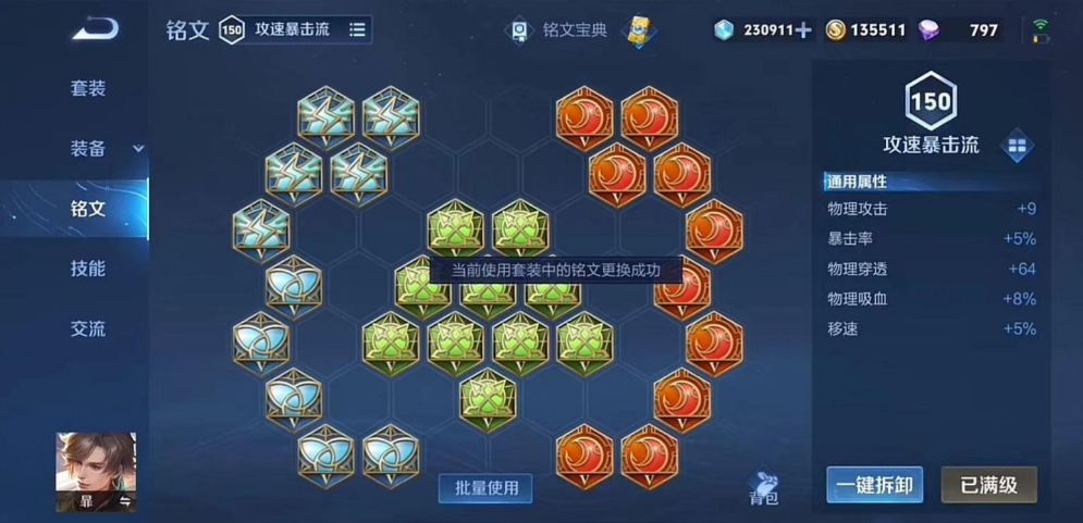 铭文搭配是强化英雄基础属性的关键。对于暃来说,通用的百穿铭文组合非常可靠,也就是红色带异变、绿色带鹰眼,这能提供大量的物理攻击和物理穿透,确保在前期打人就很痛。蓝色铭文的选择可以灵活一些,追求极致伤害和支援速度可以带10个隐匿,增加物理攻击和移速;如果想要一些攻速让普攻手感更顺畅,可以混合携带几个狩猎。也有国服玩家会采用更极端的搭配,比如在红色铭文中混入一个红月来触发额外的攻速暴击。