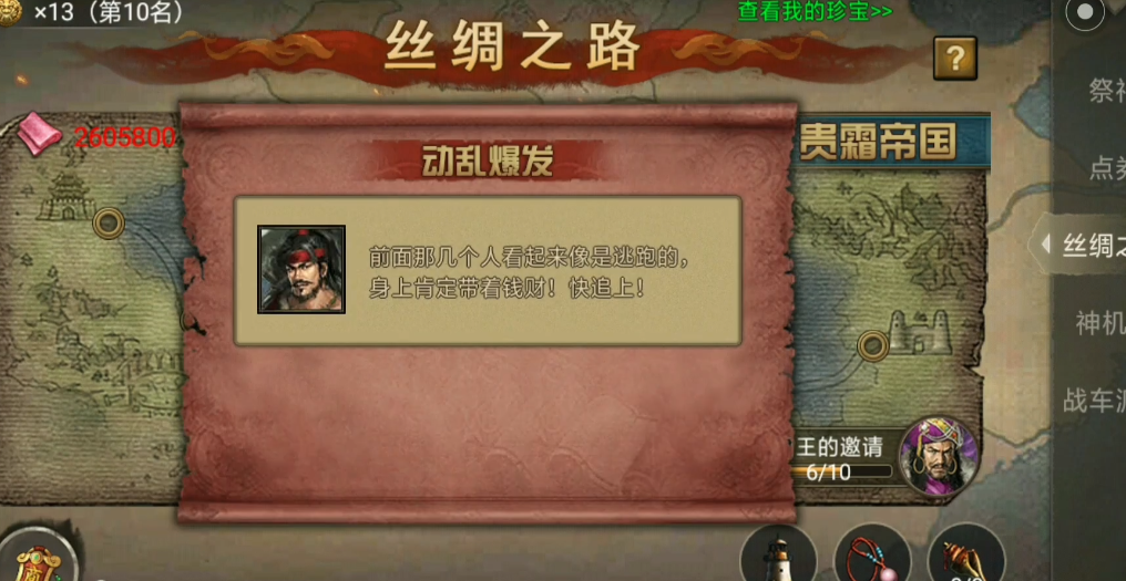 丝绸之路是一个获取珍宝碎片和资源的重要玩法,需要你先达到150级玩家等级和6级国家等级才能解锁入口。开启后,你可以通过贸易任务运输货物,与其他玩家交易来获得利润,用于发展军队和建筑。单趟丝绸之路需要消耗1万丝绸,所以提前准备好资源是关键。这个活动不管你是免费玩家还是付费玩家都值得参与,因为对实力提升帮助很大。