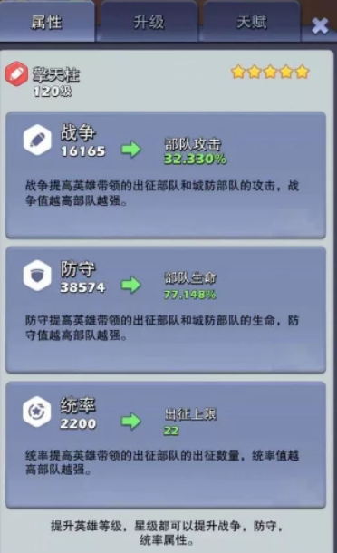 天赋系统是游戏里提升英雄战力的核心玩法之一,这是一个需要你投入不少资源和时间去研究的深度内容。你的英雄在达到五星等级后,天赋系统就会解锁,每个英雄总共可以拥有四条不同的天赋。这些天赋可不是随便点点的,升满一条天赋需要消耗400到440个对应的英雄碎片,而把一个橙色英雄培养到五星本身就需要620个碎片,所以积累碎片是前期就要开始规划的事情。天赋的属性加成非常可观,一条满级的橙色英雄天赋能为你的兵种提供高达110%的属性提升,这可是实打实的战斗力飞跃。理解天赋的构成和培养路径,对于任何想认真玩下去的指挥官来说都是必修课。