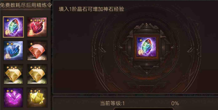 接下来聊聊精炼过程中的一些实战技巧和心法。首先得有个整体目标,通常建议你先把手头6个晶石都升级到21级,这是打基础。 在升级路上,如果碰上游戏里开的精炼活动,那千万别错过,这是集中提升晶石技能等级的好时机。 平时活动送的那些免费精炼次数,也最好攒着,留到精炼活动期间再用,效益更高。 在活动期间,如果你充值完成一定次数的金币精炼,比如80到150次,有时还能额外拿到精炼密令这种好东西,能帮你把4级技能直接顶到5级。