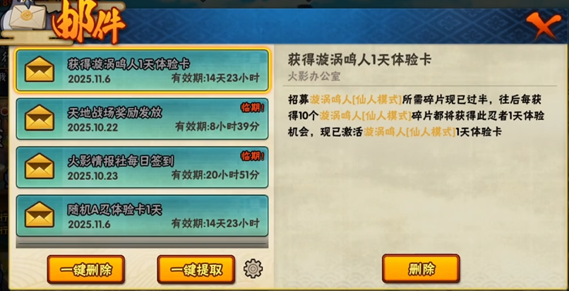 碎片收集机制也能自动解锁体验卡,比如当S级忍者碎片积累到50片时,系统会发放24小时的体验卡,之后每增加10片碎片还能续期一天。这种方式特别适合高招忍者,玩家需要通过高级招募或限时宝箱来获取碎片,从而逐步延长体验时间。新手玩家还可以通过参与新手活动来获得体验卡,比如完成初入忍界任务或成长助力活动,就能领取忍者体验卡。这些活动通常有阶段性奖励,坚持参与就能逐步积累更多资源。