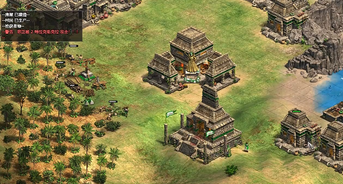 蒙提祖马战役第二关的核心目标是击败反叛的特拉斯卡拉部落,具体需要摧毁其四座城堡,并确保英雄单位蒙提祖马在战斗过程中存活。游戏开局后,玩家的首要任务是利用初始的一小队勇士和村民,立即着手建立稳固的经济基础。应优先安排村民采集食物和木材,这是早期发展的关键,基地附近的果树丛和鹿群是重要的初期食物来源。需要合理分配少量村民开采金矿与石料,黄金用于后续训练军事单位和升级科技,而石料则对建造城堡等关键防御建筑至关重要。在资源有限的情况下,应尽快升级至封建时代,以解锁更高效的生产建筑与兵种,为后续的军事行动打下坚实基础。