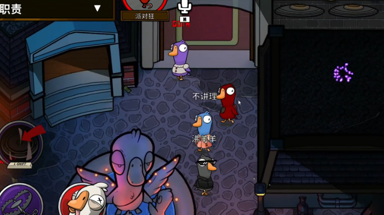 派对狂是鸭子阵营(即坏人阵营)的一个特殊角色,其核心能力并非直接杀伤,而是在会议期间对特定玩家的发言声音进行干扰。作为鸭子阵营的一员,派对狂的终极目标与所有鸭子一致,即通过击杀或投票等方式消灭所有鹅阵营的好人玩家以获取胜利。该角色失去了鸭子阵营常见的钻通风管道能力,其技能按键被永久替换为独有的派对功能,这使其在游戏中的行为模式与常规鸭子有所区别。