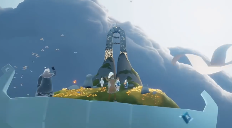八人机关启动时,需八位玩家各自占据一个机关位置,同步点击点火按钮,轮盘下方会出现持续上升的光效,平台会缓慢升至上层区域。抵达上层后,视野中会出现一圈环绕式蜡烛,分布在平台边缘与中央石柱周围。需将所有蜡烛逐一完全点亮,当最后一根蜡烛燃起时,中央位置会迸发出金色光芒,举火先祖的虚影会从光芒中浮现,同时触发回忆动画。动画播放完毕,先祖正式激活,靠近后可打开兑换树,免费解锁一级举火动作。