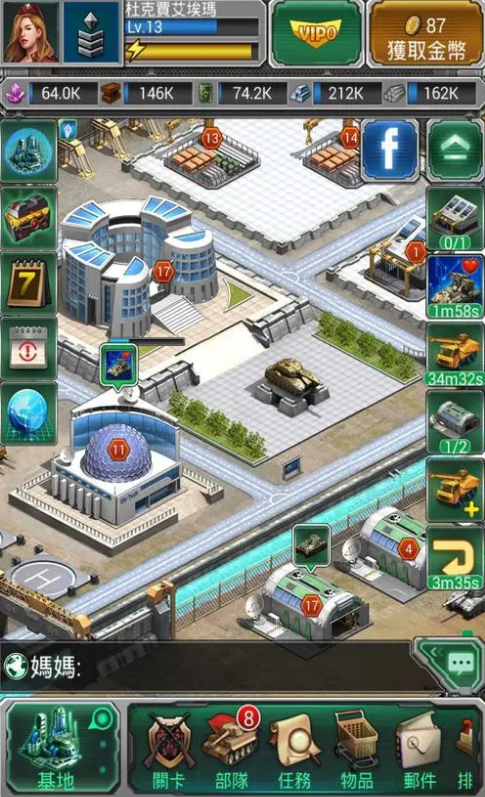 钛矿还广泛用于基地高级建筑升级与配件改造,指挥中心、装置车间、仓库等核心建筑突破高阶等级时,都会需求大量钛矿,指挥中心每提升10级才能解锁一个钛矿场,最高可解锁6个,而升级钛矿场本身也需要消耗钛矿,提升自身产量与仓库容量。装置车间制造高级配件、改造坦克装备时,钛矿是核心材料之一,高级配件能大幅提升坦克的命中、闪避、减伤等特殊属性,让部队在战斗中占据优势,普通配件则无法达到此类效果。