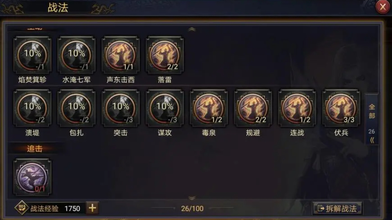 方阵突击品质为A级,类型是追击战法,发动几率30%,效果为普通攻击后,对攻击目标再次发动攻击,伤害率200%,并使目标陷入混乱状态持续1回合。该战法依赖普通攻击触发,搭配能提升普攻频率的指挥战法可大幅强化实战效果,常见搭配为先驱突击,战斗前3回合让太史慈优先行动且每回合两次普攻,配合方阵突击的30%触发率,能稳定打出额外伤害与混乱控制,适合开荒期快速压制守军,也适用于对抗敌方输出型武将,混乱效果可让敌方目标无法正常行动,降低我方队伍战损。太史慈搭配该战法时,兵种推荐转长弓兵,提升射程与攻击伤害,兵种特性选择齐射、死士,进一步强化普攻与追击战法的输出能力,让方阵突击的触发与伤害效果最大化。