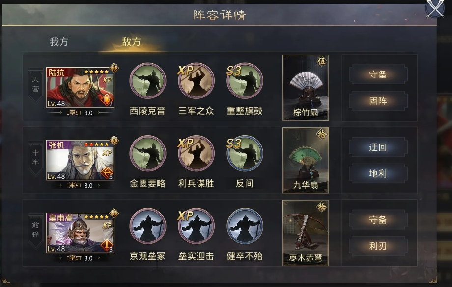 携带方阵突击的太史慈常作为开荒队核心,搭配甄洛、吕蒙等武将组成开荒阵容,甄洛提供续航回血,吕蒙提供控制与减伤,太史慈依靠方阵突击打输出与控制,这套组合能平稳应对前期各级土地守军,尤其适合平民玩家快速开荒发育。在后期对战中,太史慈可搭配鹤翼、长兵方阵等战法,提升队伍整体普攻输出,方阵突击的混乱效果能有效克制依赖主动战法输出的敌方队伍,打乱敌方技能释放节奏,在团战与城池攻防战中发挥稳定的控制与输出作用。