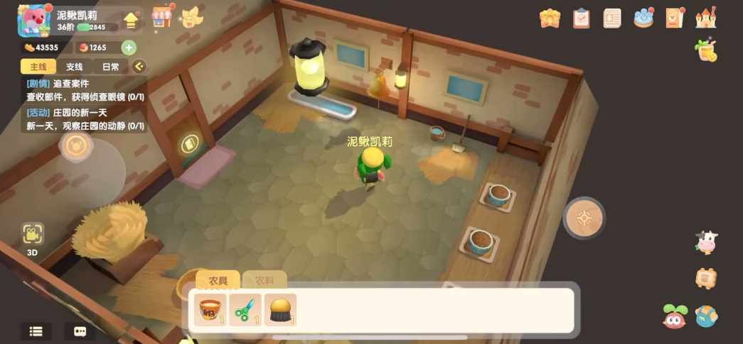 初始阶段只能购买鸡崽,等级提升和任务完成,可以解锁更多动物种类。一个禽舍最多同时饲养四只鸡崽,超出数量会暂时存放在动物管理界面中。后续养鸡需要先完成禽舍的修复任务,当农场主等级达到14级时,可以找NPC汤米接取修复禽舍的任务。修复过程需要一天时间,完成后NPC尤尤会出现在禽舍内,玩家可以从她的商店购买幼年鸡崽。