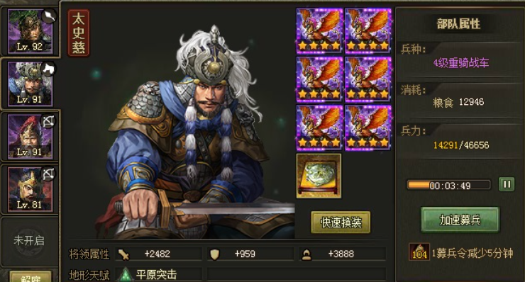 攻城掠地128级司马懿副本属于平原地形,整体难度适中,主将司马懿无战法,部将战法为突击攻击3排。若能通过127级副本,通常具备挑战128副本的实力。关键配置包括4个5级晶石,攻击+2900、防御+1400、兵力+4600左右。推荐首发武将使用真龟灵套装关羽,起手战法后平砍,通常能剩余一排面对第二个部将。