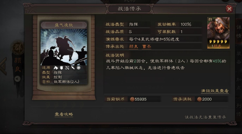 兵种适性与战法配置对实际带兵效能具有显著影响。高适性兵种可发挥武将120%属性,例如S级枪兵适性武将统领枪兵时,其攻防能力会显著优于低适性组合。战法选择需兼顾输出与生存,例如搭配盛气凌敌可提升部队持续作战能力,而破阵摧坚则能通过降低敌方属性间接增强己方兵力优势。需注意战法发动概率与武将速度属性的联动关系,确保关键技能优先释放。