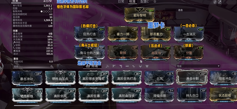 破碎的纷争是新手阶段性价比极高的选择,通过完成主线任务梦中梦即可获取。这把武器拥有高暴击率和触发率,基础性能均衡且无需额外制作材料。关刀(偃月刀)在达到4段后可通过氏族复制设计图制作,虽然需要一定段位要求,但自带Orokin催化剂的版本能显著提升战力。加拉丁暗影作为前期易获取的武器,伤害表现突出,适合应对高血量敌人,虽然攻速较慢但操作门槛较低。